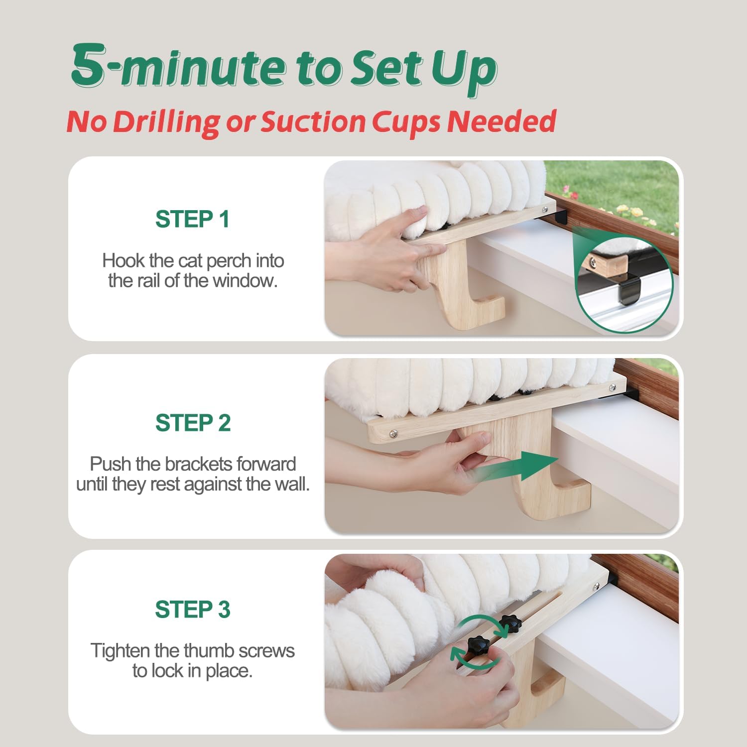 No Suction Cups Needed, Tool-Free Mounting: Ensure your window has a SLOT at least 0.5 inches deep for the perch to hook onto (hook thickness: 0.08 inch). An adjustable bracket accommodates windowsills up to 9" deep - no drilling or suction cups.