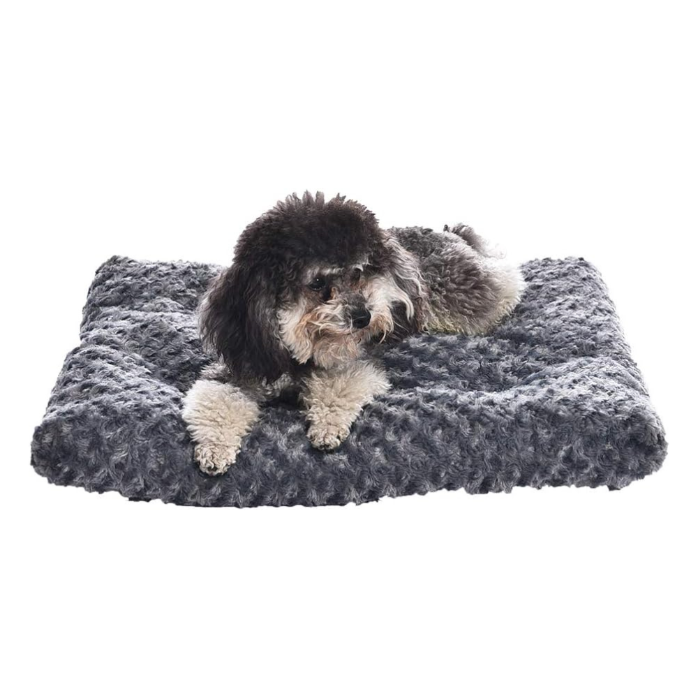 This dog crate pad is designed to provide a cozy and supportive space for your cat or dog. This durable dog bed features an ultra-soft plush exterior with stitched tufting that offers cushioned comfort. This washable dog bed is fully machine washable and dryable for effortless cleaning; avoid machine washing if the bed is damaged or torn to provide longevity.