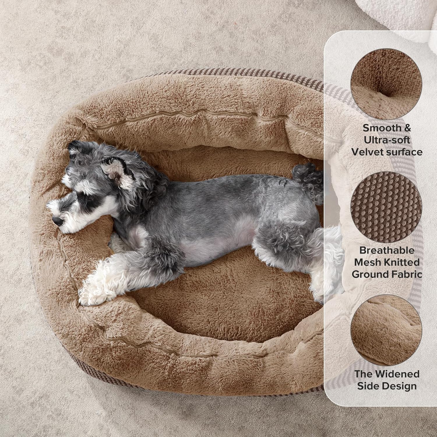 🐶COMFORT AS PRIORITY: The stylish rectangle shaped Supportive Raised Sides design creates a cozy and inviting space that promotes comfort and security; designed with Wide Side Bolsters for dogs to rest their heads on for optimum lounging comfort. Low leading-edge design is easy access for small and old dogs.